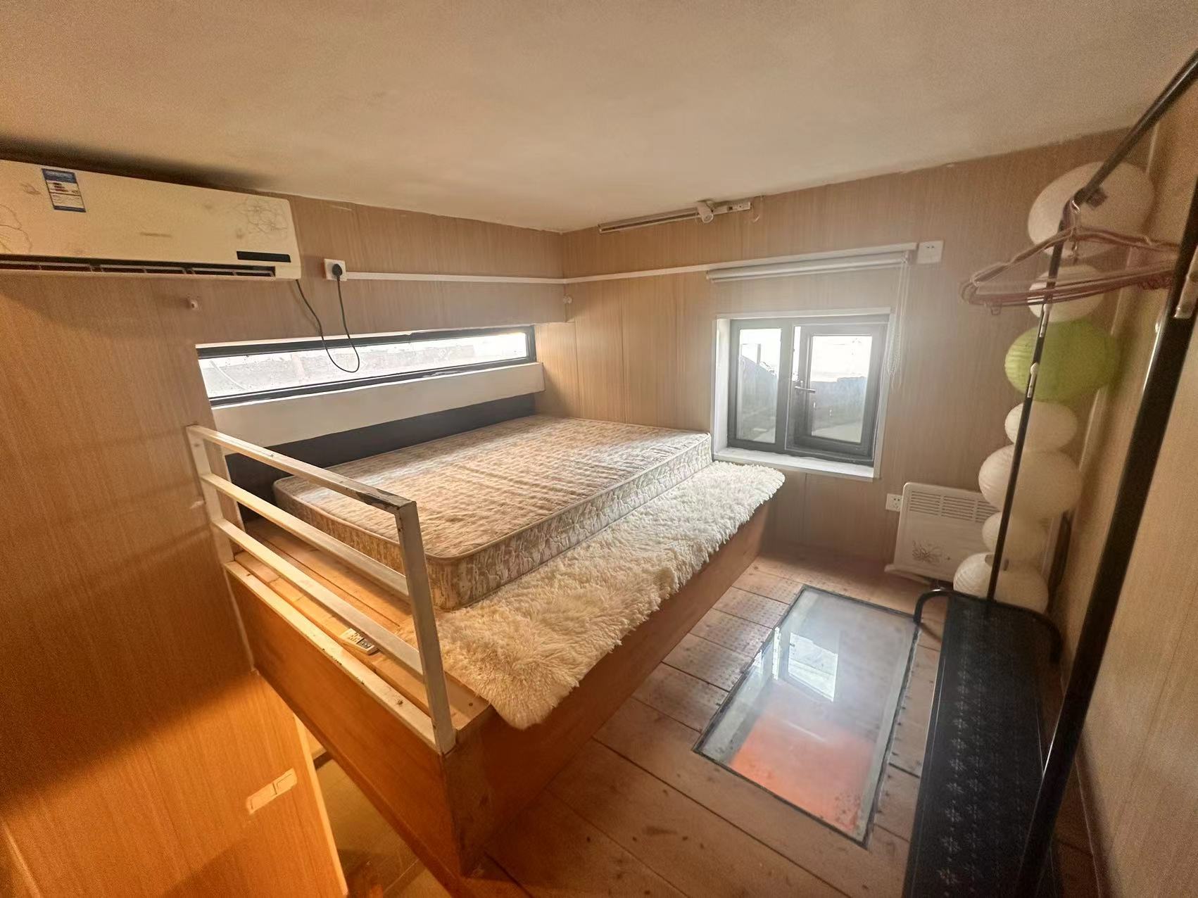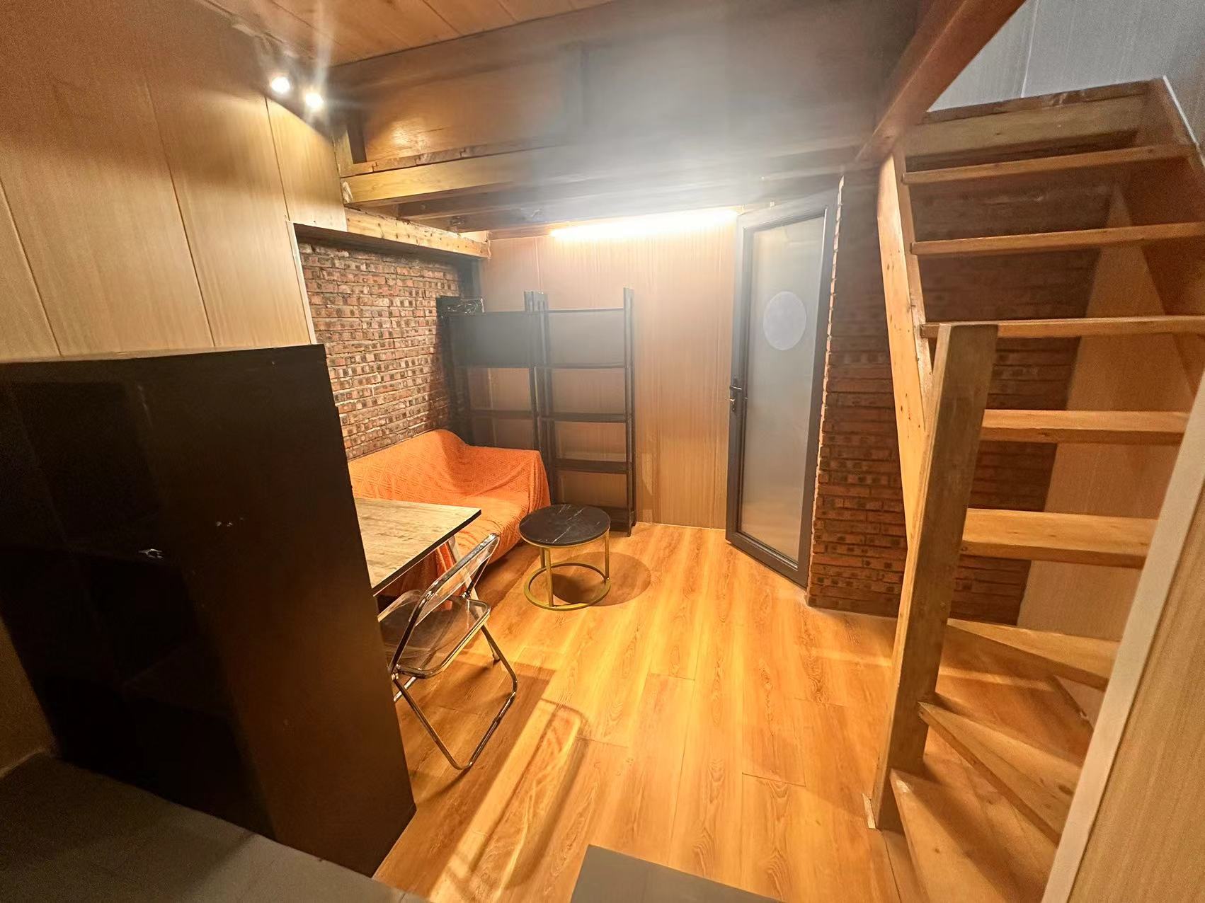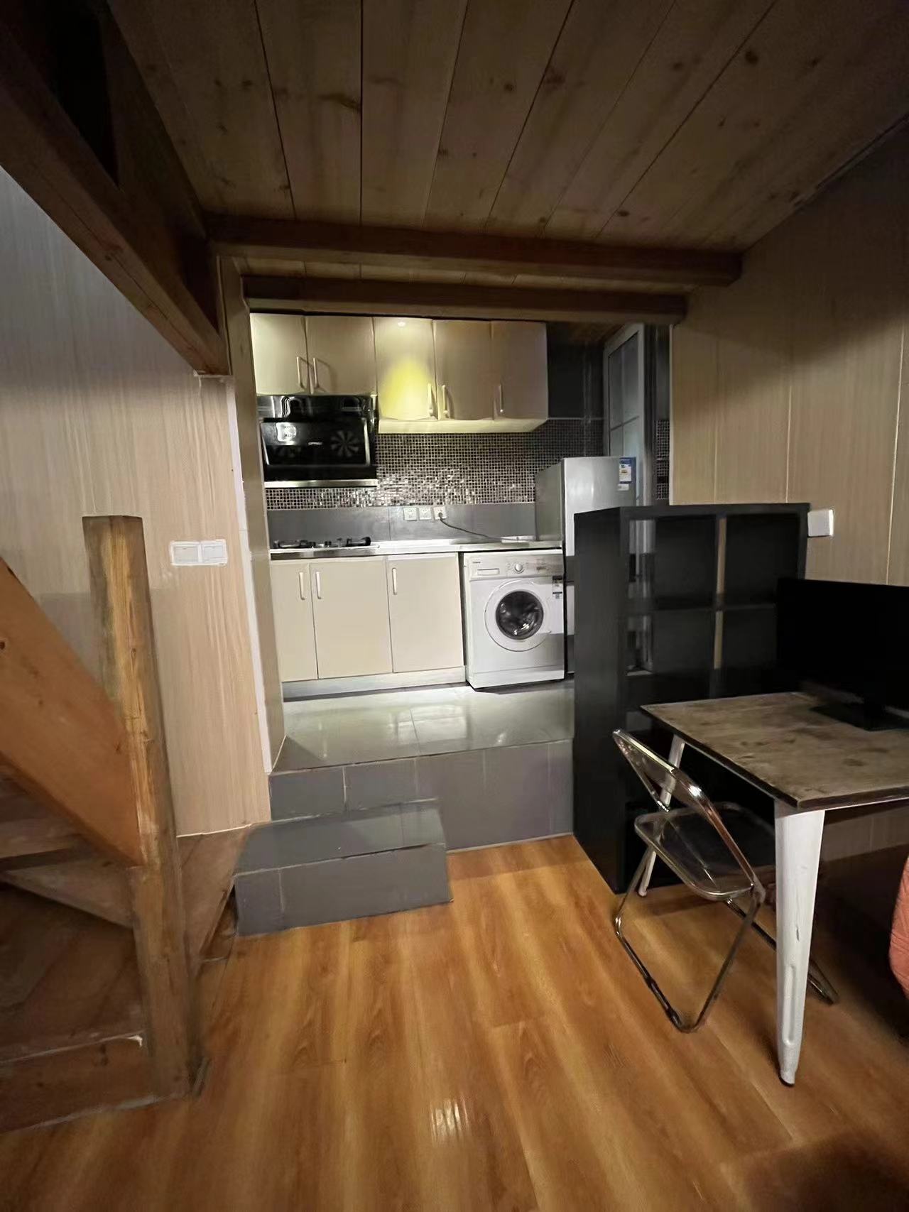 it is a newly renovated one bedroom in a compound with a shared yard and terrace, located in Gulou West, duplex apartment with nice sunshine, bedroom in upstairs with big windows, and living room with open kitchen in downstairs, Western style bathroom is very clean and comfy. Floor heating, and air conditioner has been installed.