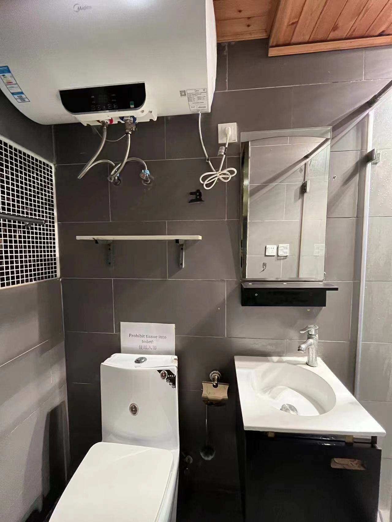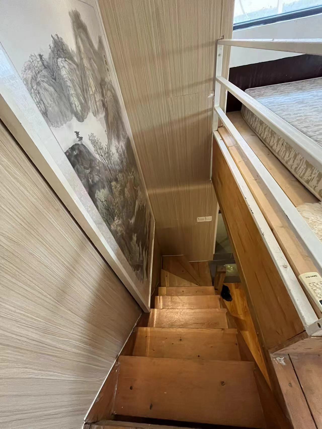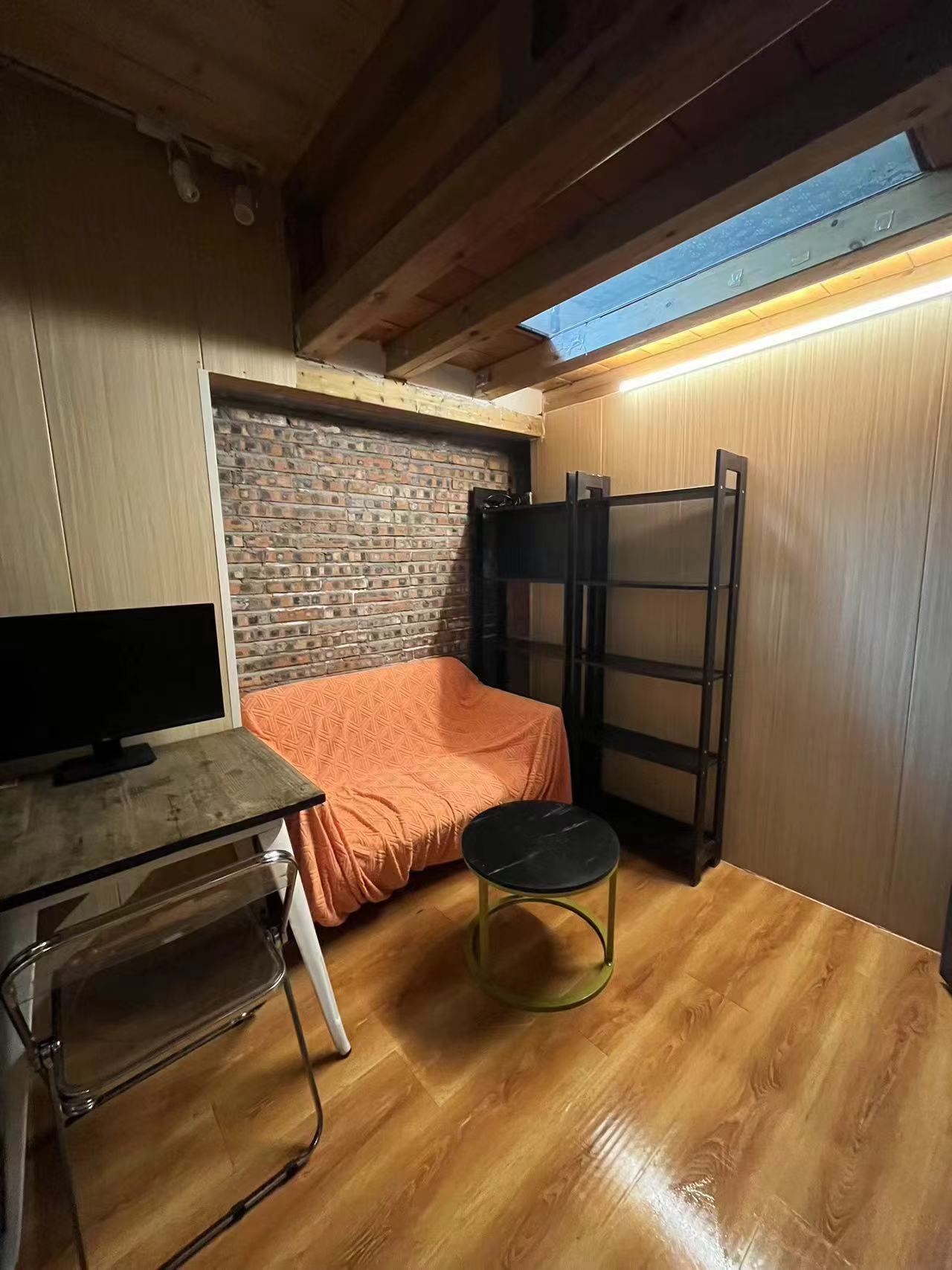 it is a newly renovated one bedroom in a compound with a shared yard and terrace, located in Gulou West, duplex apartment with nice sunshine, bedroom in upstairs with big windows, and living room with open kitchen in downstairs, Western style bathroom is very clean and comfy. Floor heating, and air conditioner has been installed.