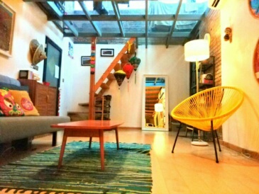 Quite large and open living room, upstairs are so sunny since the window is south and east facing, it has floor heating and wooden floor, open kitchen, nice shower cabinet, spacious bathroom, good storage. wifi, fridge, microwave, washer, nice and big open terrace on top of the sunny bedroom. Total space 80sqm.