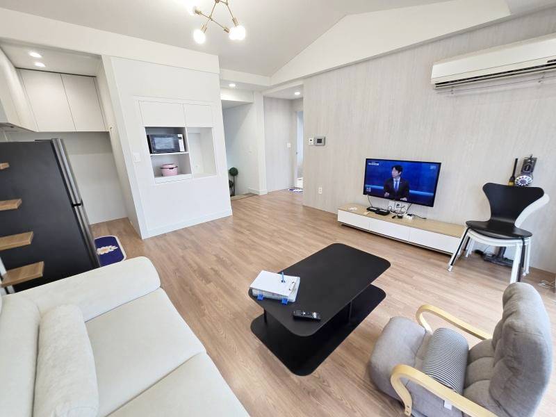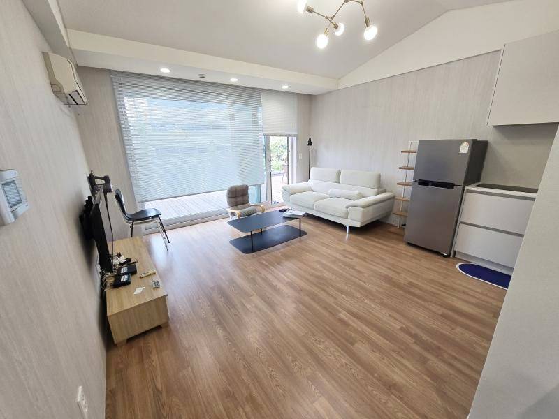 -Features: air conditioner, washing machine, refrigerator, shower booth, sink, induction, TV, sofa, bed, dining table, large closet, microwave oven, gate security